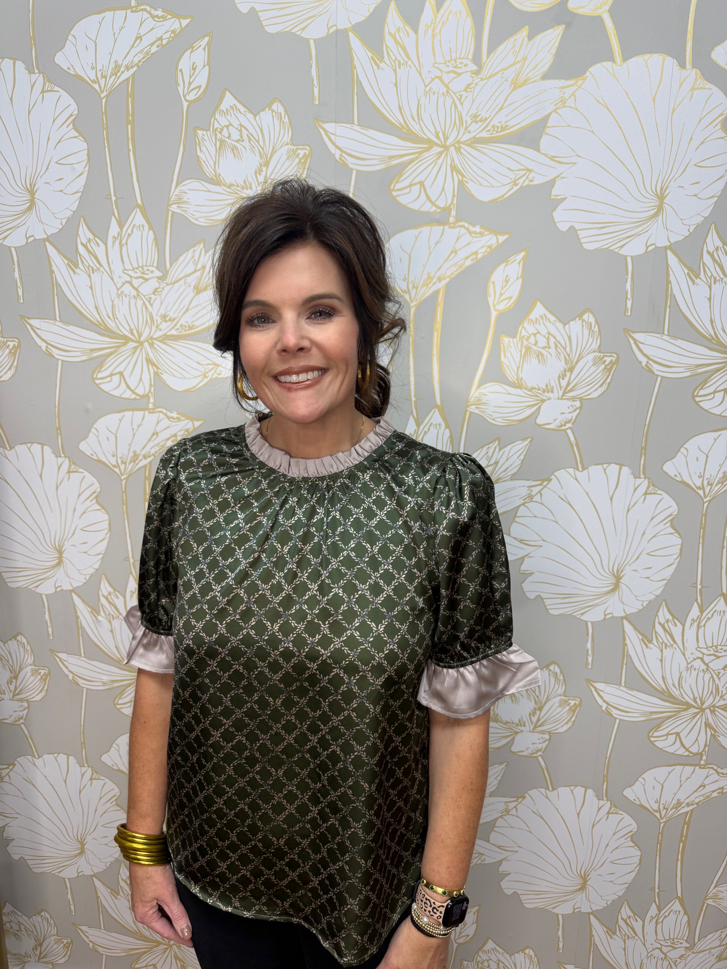 Elevate your wardrobe with the Soft Spoken Top, featuring a solid ruffle detail that adds subtle elegance to your look. Crafted from smooth abstract sateen fabric, it offers a comfortable, refined feel that moves with you throughout the day. This top is perfect for those seeking a blend of style and ease, making it a versatile choice for both work and casual occasions. Enjoy the gentle sophistication and flattering silhouette designed to support your confidence.