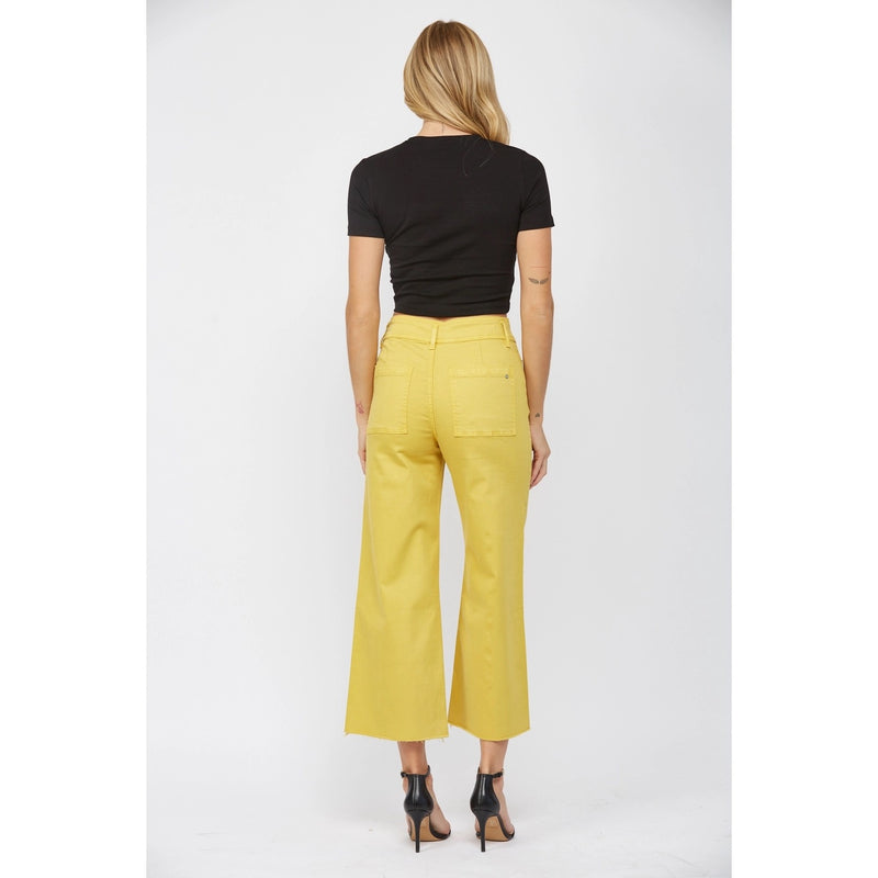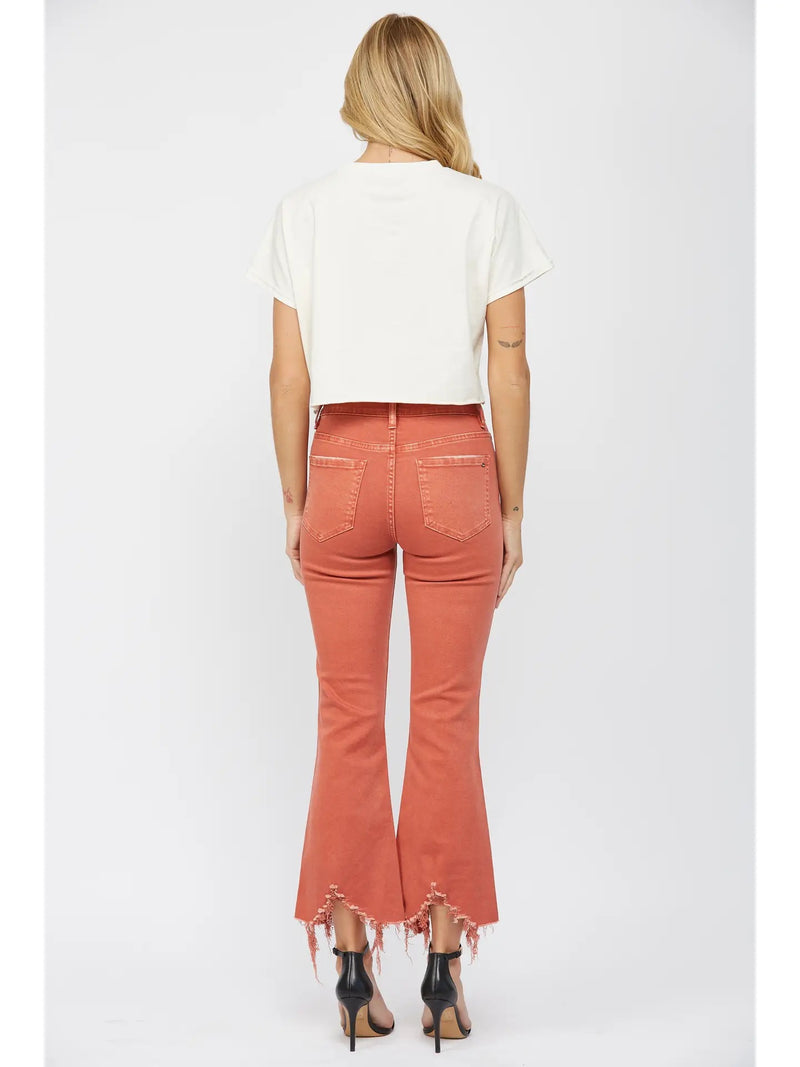 High Rise Crop Flare with Uneven Hem in Bright Penny