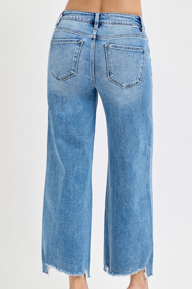Mid Rise Distressed Ankle Bootcut Jeans in Quince