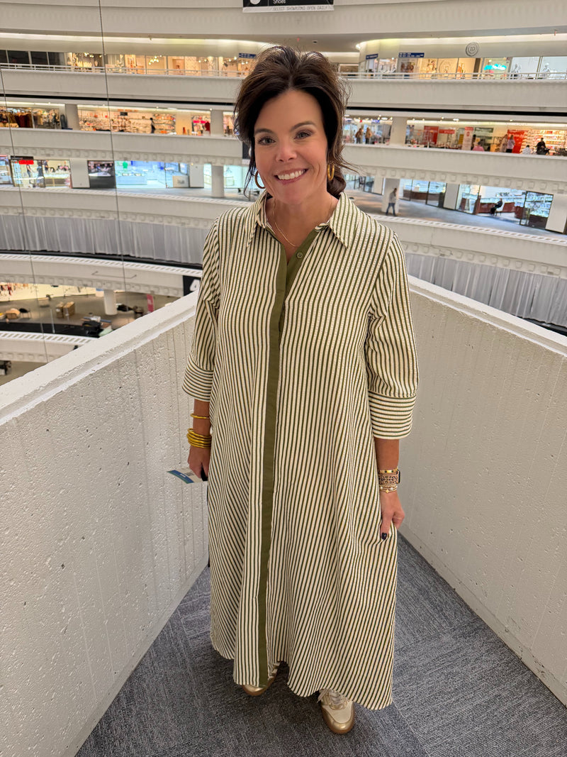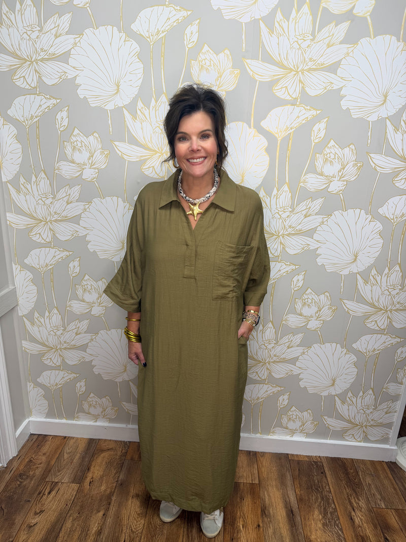 Floral Ruffle Neck Button Shirt Maxi Dress|KARLIE