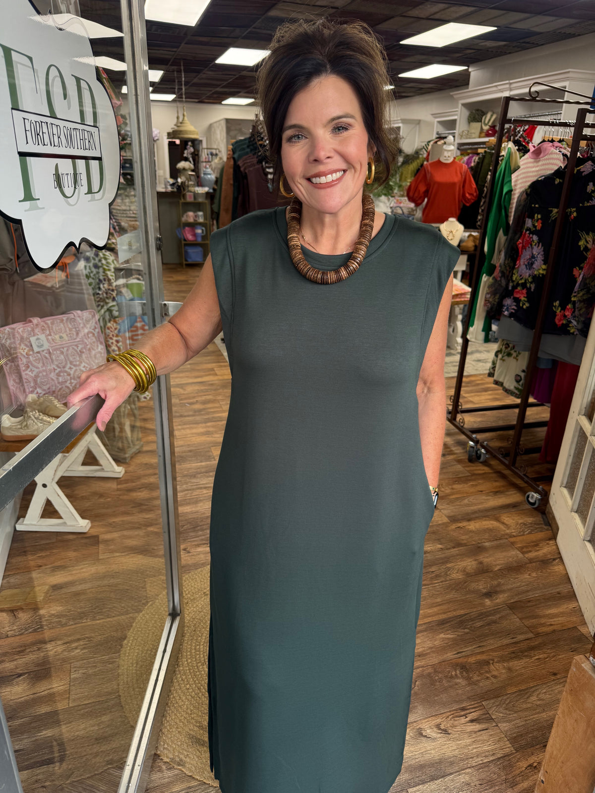 The Scuba Midi Dress is a comfortable and versatile wardrobe essential. Made from lightweight, solid jersey knit, it offers a flattering fit with a side slit hem for ease of movement. Practical side pockets add convenience without sacrificing style. This unlined, non-sheer dress provides breathable coverage, perfect for all-day wear. Whether dressed up or down, it supports your confidence and style effortlessly.