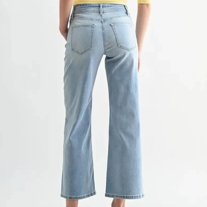 Mid Rise Wide Leg Ankle Jeans in Pale Blue