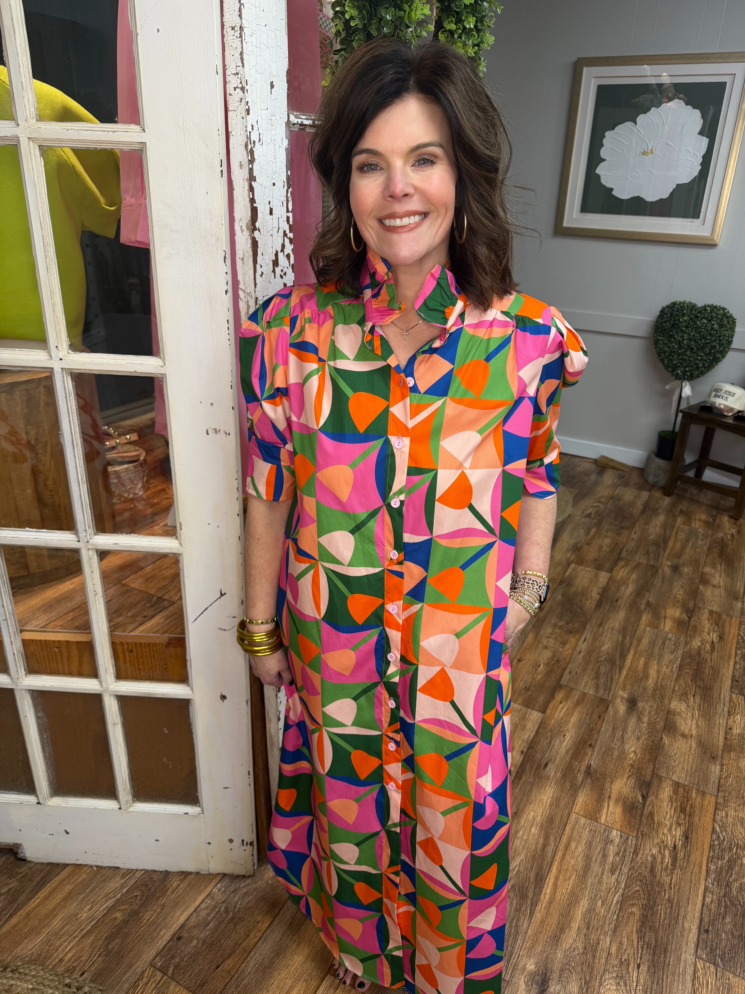 The Nina Midi Dress in Petal Pop is a charming piece that brings effortless elegance to your everyday wardrobe. Featuring a romantic ruffle collar and delicate puff sleeves, this midi-length dress offers a flattering silhouette with vintage-inspired details. Perfect for brunch dates, casual outings, or dressing up your weekend plans, it's a versatile staple that transitions beautifully from day to night. The soft petal pop hue adds a cheerful touch while remaining easy to style with your favorite accessories and footwear.