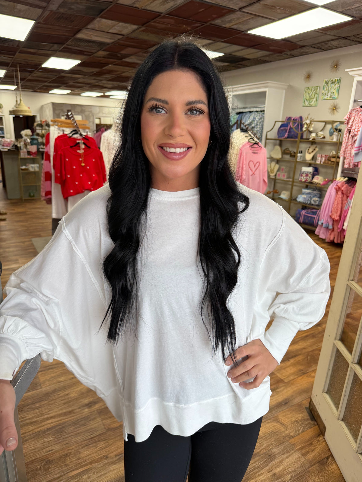 The Ann Pullover is a relaxed, oversized long sleeve pullover designed for effortless comfort. Featuring distinctive seam detailing that adds visual interest and dimension, this piece layers beautifully and works as a standalone statement. The generous fit accommodates layering while maintaining a polished silhouette. Perfect for casual days when you want to feel put-together without sacrificing ease.