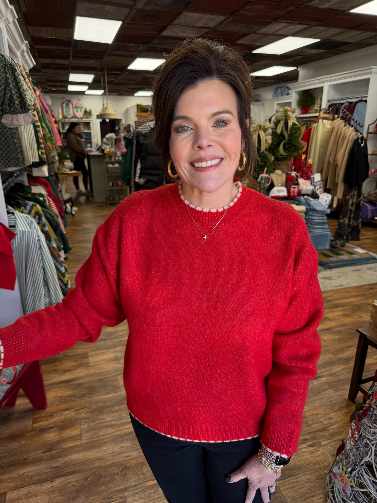 The Hadley Sweater is a timeless knit essential that brings warmth and sophistication to your everyday wardrobe. Crafted from soft, quality knit fabric, this sweater features delicate ivory trim that adds a refined touch to the neckline and cuffs. Perfect for layering or wearing solo, it's designed to make you feel comfortable and confident whether you're heading to the office, meeting friends, or enjoying a cozy night in. A versatile piece that works beautifully with jeans, skirts, or trousers, The Hadley Sweater is the reliable favorite you'll reach for season after season.